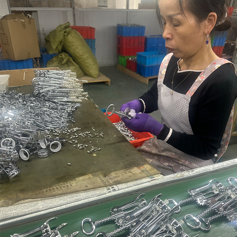 Seluruh pembabitan corkscrew telah mencapai proses terakhirnya, iaitu pemasangan. Jabatan. Mengikuti manual spesifikasi produk yang ditetapkan, bahagian separuh siap disimpan dalam inventori dan seterusnya memasuki barisan pengeluaran untuk pemasangan.