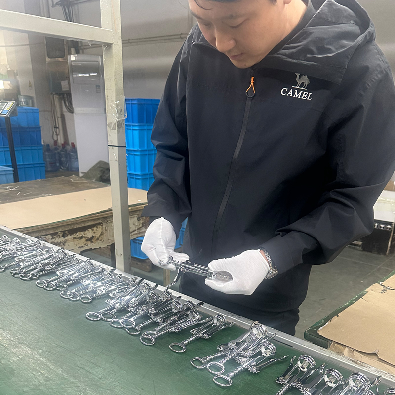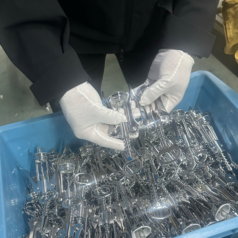 Lapisan pada semua komponen pembubaran corkscrew biasanya menggunakan kaedah elektroplating atau lukisan, untuk ilustrasi ini, kami akan memberi tumpuan kepada elektroplating. Electroplating pemprosesan diselesaikan oleh pembekal luar, yang memerlukan kemudahan yang sangat khusus, peralatan yang sangat baik. pengalaman, memastikan kestabilan produk. Ini juga memastikan pelbagai isu pengeluaran yang dihadapi semasa pembuatan dapat ditangani dengan cepat, profesional dan cekap. Pengaturan ini membantu memastikan kitaran pengeluaran untuk item seperti aksesori wain, dapur dan gabus, sementara juga menyokong rancangan jualan pelanggan.