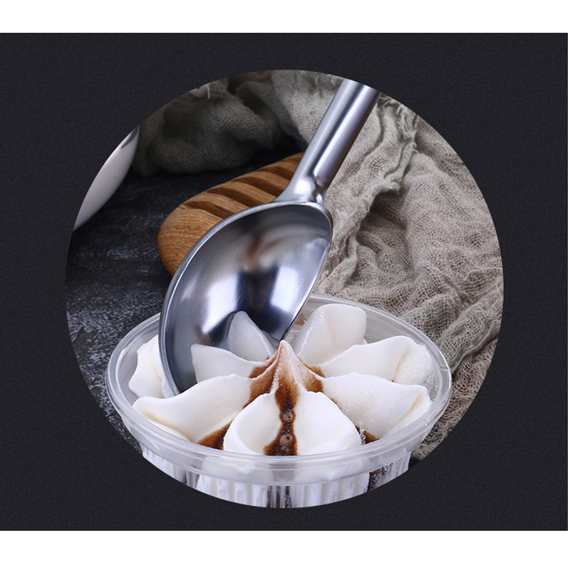 Sudu ais krim aloi zink ini dengan pemegang cengkaman yang selesa dibuat daripada aloi zink premium melalui tuangan yang lancar, sudu ini mempunyai tepi berkontur lancar tanpa bucu tajam, memastikan pengalaman cengkaman bulat yang selesa. Walaupun panjangnya 16.5 cm, sudu itu seberat 75 gram sahaja, terima kasih kepada proses pengeluaran 6-langkah buatan tangan kami yang bersalut tinggi. kemasan (120°C),mencipta struktur yang tahan lama namun ringan bulu.Kepala sudu menggunakan bentuk bot terbuka dengan hujung bersudut luar 108 darjah yang direka bentuk unik yang menghiris ais krim beku dengan mudah.Di kedua-dua belah kepala sudu, garisan melengkung memanjang lebih rendah daripada badan utama,membentuk permukaan bergelombang, bergelombang untuk memastikan reka bentuk ais yang lancar dan tidak bergelombang ini membolehkan reka bentuk yang lancar dan tidak bergelombang yang dapat digunakan oleh sesiapa sahaja. tanpa mengira tahap kemahiran.